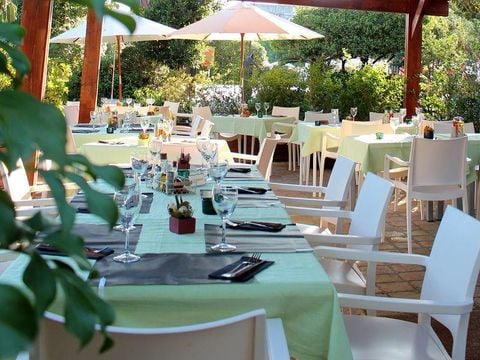 Autour des bassins, une vaste terrasse avec transats et parasols vous attend pour vos séances de lecture ou de bronzage. En haute saison, l'équipe d'animation y organise également des séances d'aquagym et des jeux aquatiques pour dynamiser vos matinées.
