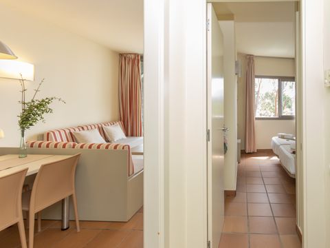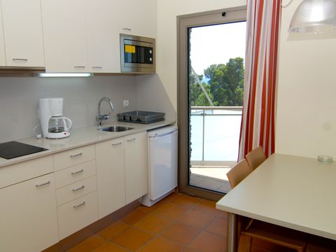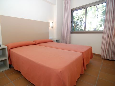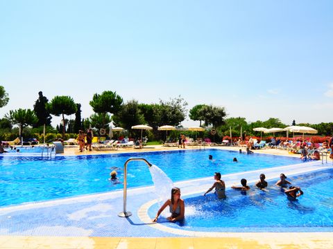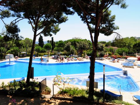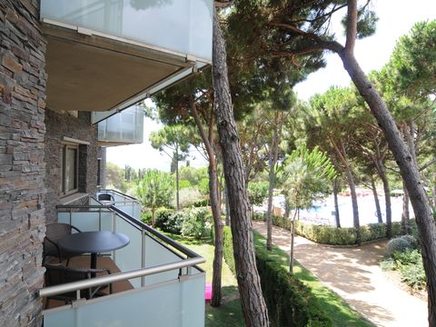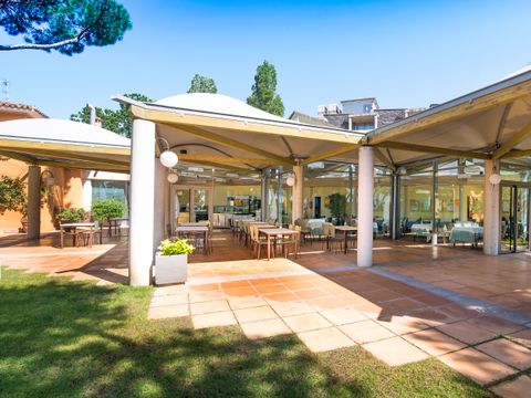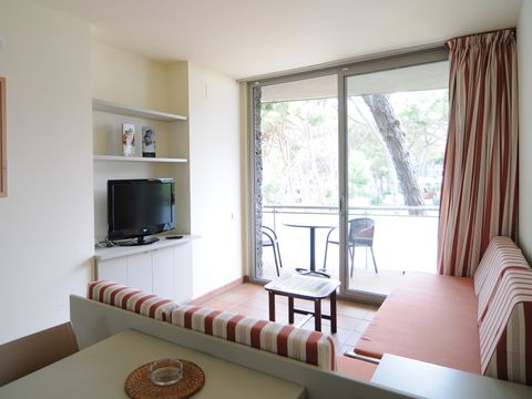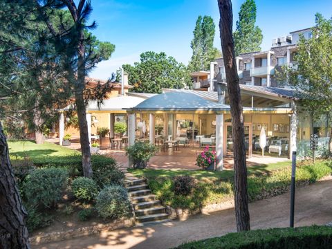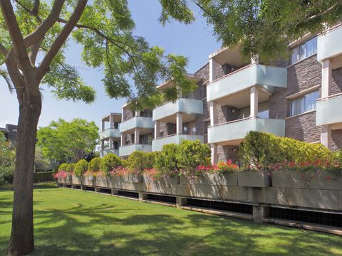 Cet appart-hôtel moderne et confortablement équipé (achevé au printemps 2004) se compose de 4 parties de bâtiment, qui sont réparties sur un terrain de pins d'environ 20 000 m2 sur une petite colline. Située à la périphérie, elle se trouve à environ 350 m de la plage, à environ 1 km du centre, et à environ 500 m des magasins, restaurants et bars. Le centre dispose d'un espace vert avec une grande aire de jeux pour enfants, une piscine (environ 30 x 10 m) et un bassin de bien-être chauffé. Dans le complexe de restauration, à l'étage, vous trouverez une cafétéria avec une belle terrasse, un restaurant self-service (buffet) et un restaurant à la carte. La demi-pension ou les repas individuels dans le restaurant self-service sont disponibles moyennant un supplément. Bureau d'accueil à l'entrée de l'établissement (ouvert de 8 h à 22 h). Les bâtiments individuels de 3 étages avec un total de 147 appartements sont équipés d'ascenseurs et disposent d'un parking souterrain (payant). Dans l'un des bâtiments, moyennant paiement : centre de bien-être avec salle de sport, sauna, bain de vapeur et massages. Il y a également un terrain multisports. Animations quotidiennes pour les enfants en juillet/août.