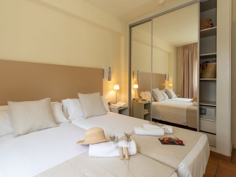 Les appartements sont meublés de manière attrayante et moderne et disposent de la climatisation (chaud/froid), du téléphone, du WIFI inclus, d'un babyphone, de la télévision par satellite (1 chaîne par pays), d'un coffre-fort et d'une machine à laver et d'un balcon ou d'une terrasse meublés (petite table + 2 chaises) .
