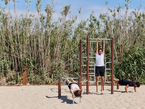 Durant les vacances d'été, des activités et des animations familiales vous attendent. Sur les lieux, les enfants trouveront : des châteaux gonflables terrestre et maritime, un mini-golf, des clowns, un tir à l'arc, et d'autres jeux interactifs et ludiques. Les grands, de leurs côtés, pourront faire du Zumba, des balades à vélo, du yoga, du kayak, visiter le Delta ou même observer les oiseaux. Par ailleurs, le célèbre parc d'attractions Port Aventura, à 30 minutes du camping, propose des excursions.