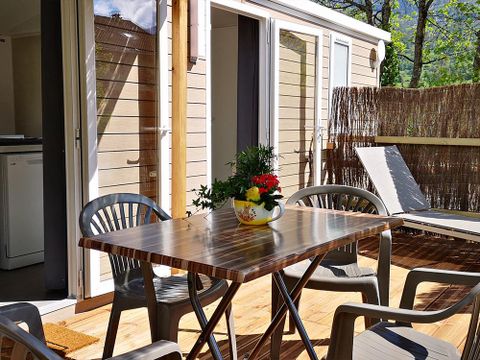 Côté service, vous aurez à votre disposition un salon avec TV, une bibliothèque, des sanitaires chauffés, une laverie avec sèche-linge, table et fer à repasser. Il dispose d'une aire de barbecue avec table de pique-nique. Vous trouverez sur le lieu un frigo et un congélateur à libre accès. Le réseau Wifi couvre l'ensemble du camping.