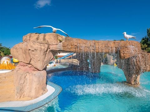 Vous profiterez d'un bel espace aquatique composé d'une piscine couverte et chauffée (hors juillet-août), d'un grand bassin extérieur avec une cascade et 3 bain à remous, d'une grande pataugeoire ludique avec jeux d'eau et 9 toboggans aquatiques qui raviront les plus grands! Celui-ci est ouvert de mai à septembre (selon météo). Le port du short de bain est interdit. Seuls, les slips de bains sont autorisés. Les 2 toboggans kamikazes sont interdits aux moins de 8 ans. La piscine couverte et chauffée est ouverte d'avril à mi-septembre.