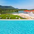 - Piscine extérieure à débordement et piscine intérieure avec vue sur lac et montagne