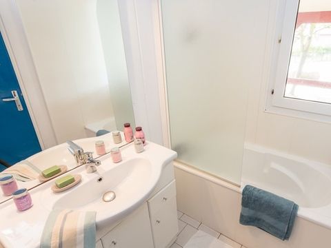 Il y a deux piscines extérieures chauffées avec deux toboggans aquatiques et 1 toboggan "kamikaze".