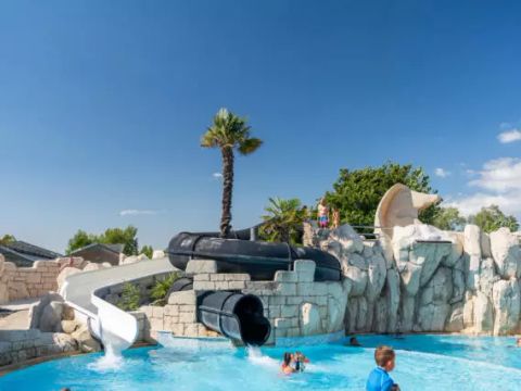 Le Village Club Le Château c'est plus de 350 emplacements, et 2 de camping-car, mais également un espace aquatique chauffé avec toboggans, une piscine couverte, une aire de jeu, un bar, un restaurant, une guinguette et une épicerie ou encore une salle de jeux. Notre camping propose également un programme d'animations 100% jeunesse, conçu avec soin par une équipe dynamique et créative.