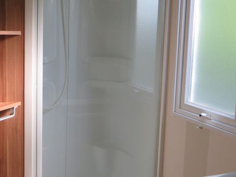 toilettes, lavabo et douche adpaté PMr dans les sanitaires communs. Les emplacements sont plats.